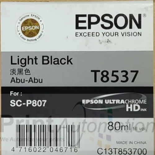 Epson T8537 light black ink cartridge for SC-P807 printers. Full status, ink technology. Delivered in a box within 2-3 days. Minimum order quantity is 1.