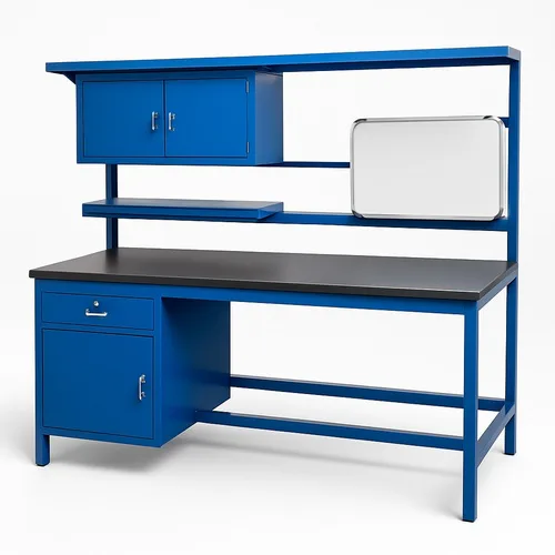 Customized ESD workstation table with lockable drawers, made from aluminium. Available in any size, color, and configuration. 1-2 year warranty against manufacturing defects.