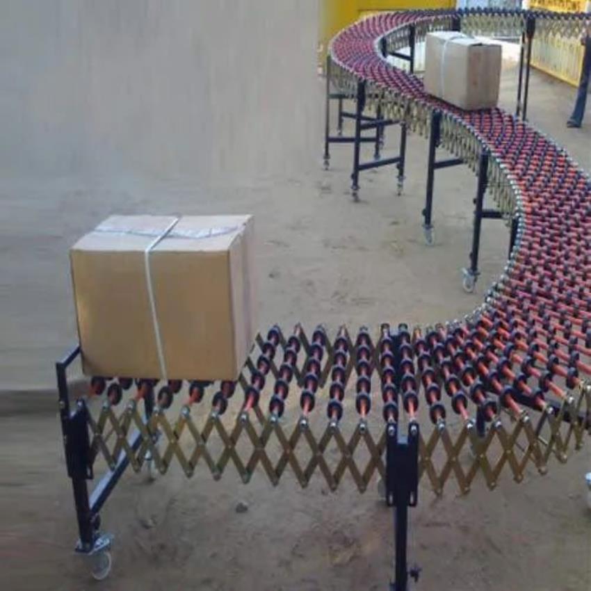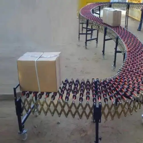 Flexible gravity roller conveyor designed for versatile material handling applications. Features adjustable length for customizable configurations.