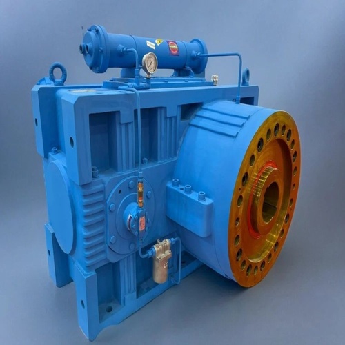 Indian-made helical gear extruder gearbox for plastic machines up to 250kW. Iron construction, available with flange or foot mounting. Handles screw diameters up to 200mm.