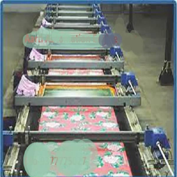 Semi-automatic fabric flatbed printing equipment with a 58'' sheet size. Operates on 15 power, designed for printing directly onto fabric.