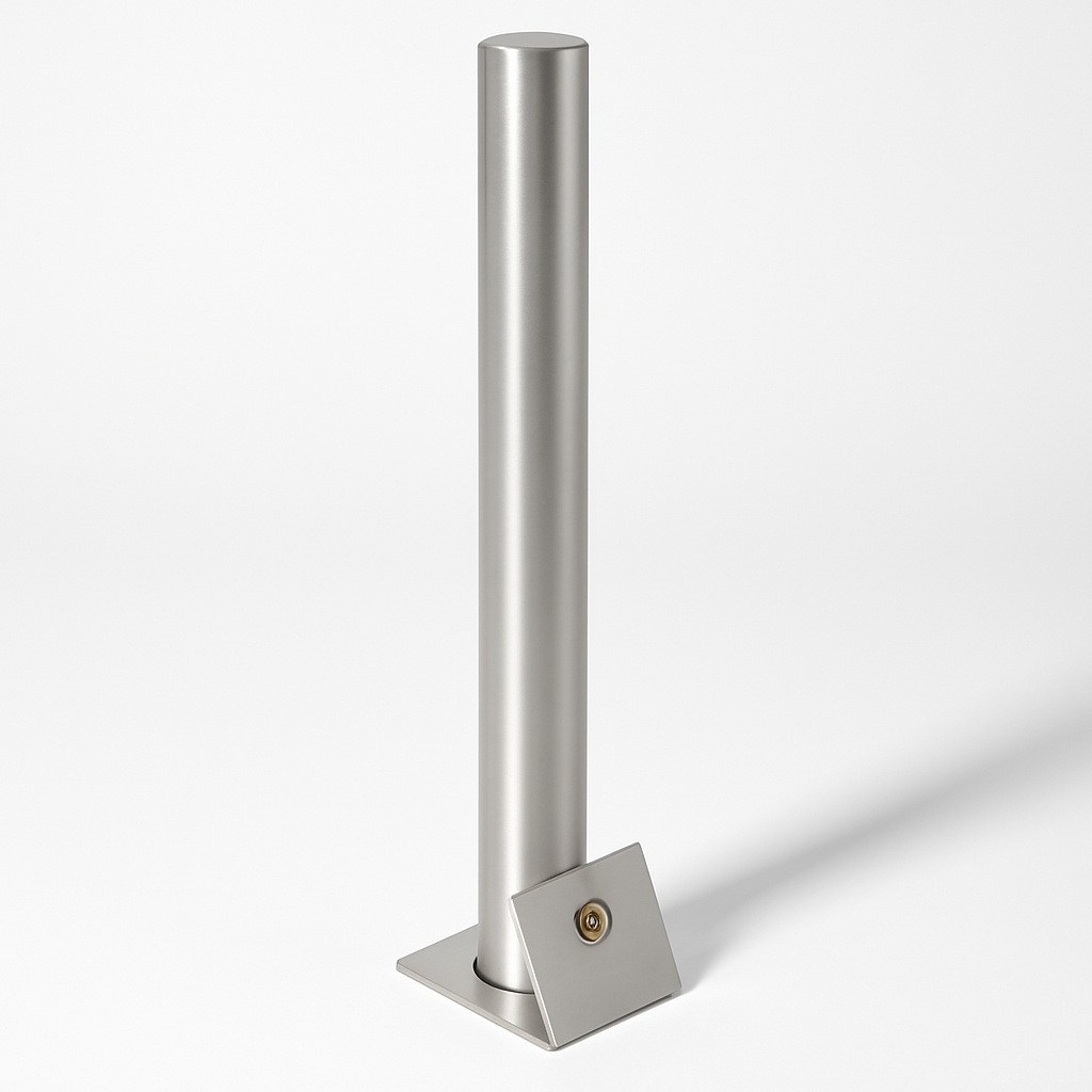 Polished SS316 stainless steel traffic control bollard. Removable design with internal locking mechanism for secure traffic management. Durable and weather-resistant.