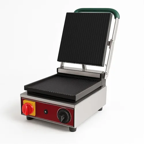 Manual fast food equipment made of stainless steel. Features 4 slice capacity and 230 voltage power.