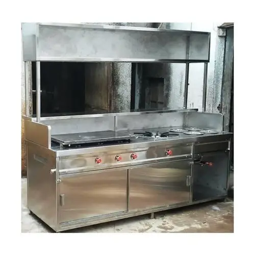 Rectangular stainless steel fast food counter, SS304 grade. Specifically designed for commercial fast food serving applications.