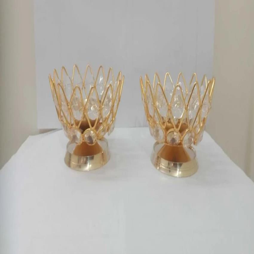 Handmade lotus brass diya with crystal accents. Golden finish, 1 flame, uses oil for lighting. Suitable for home, office, and temples during festivals.