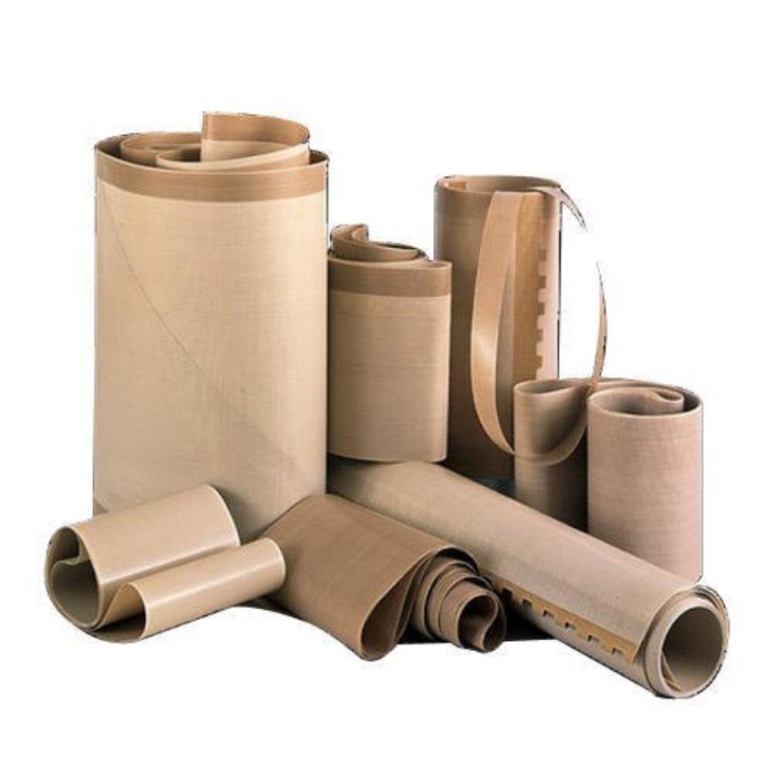 Industrial Teflon conveyor belt, brown color, 0.5m thickness. Made from fiber glass, available in lengths of 100m-200m. Minimum order 2 meters.