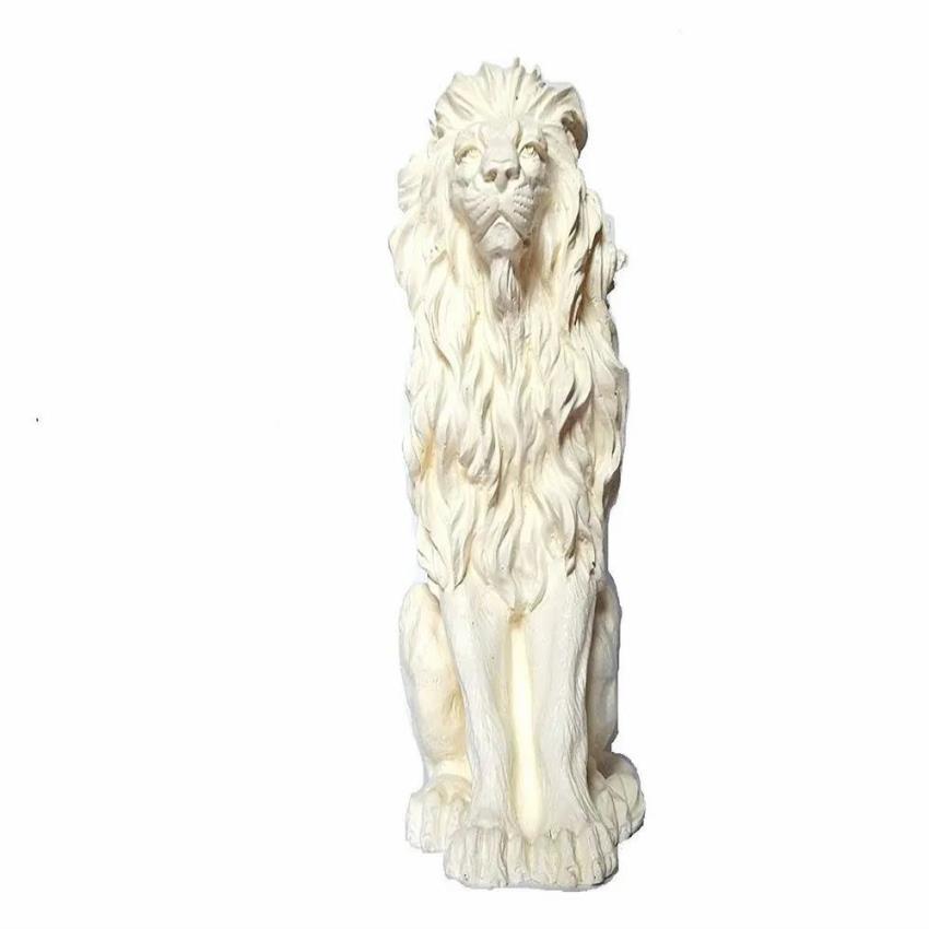 Handmade fiber lion statue measuring 6x12 inches. Crafted with durable fiber material. Proudly made in India. Ideal for decorative purposes.