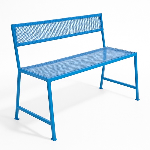 Durable garden bench made from metal and fiber in blue. Ideal for garden and park applications. Brand new, manufactured in India. Minimum order quantity is one unit.