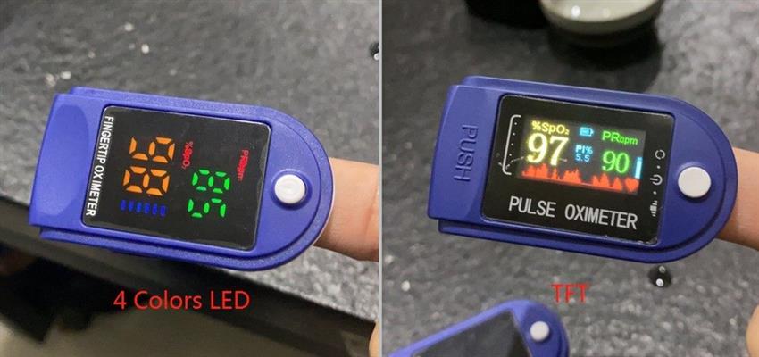 Measures SpO2 (70-90%) and Pulse Rate (30-240 BPM) on a 4-color LED display. Low perfusion down to 0.3%. Power consumption under 30mA.