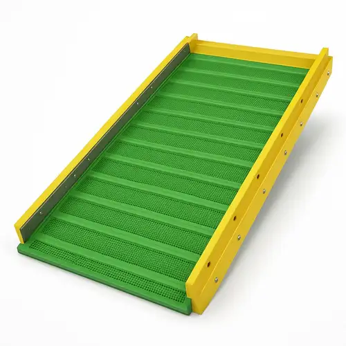 Yellow Flip Flow Screen panel, 305mm x 305mm size, 70 Shore D hardness. Made in India, designed for efficient material screening applications.