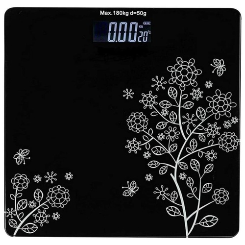 Flower LCD personal body weighing scale with 180 kg maximum capacity. Battery operated with fully automatic calibration. Home use, 260x260mm size.