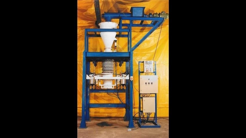 Mild steel fly ash jumbo bag packing machine. Operates on 230-420V, handling metalized bags. Capacity: 12-20 BPH. Reliable for high-volume production.