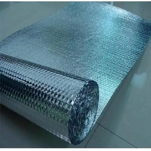 Foil-backed bubble wrap sheet with R-value 2.98 M2 DegreeC/W. Effective thermal insulation for applications requiring 6-8 Degree C temperature resistance. Size: 1.25m x 40m.
