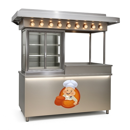 A food cart measuring 7 feet by 3 feet. This versatile cart provides ample space for food preparation and service.