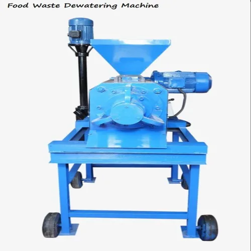Semi-automatic food waste dewatering device, 30 KLD capacity. Operates on 230V, 50Hz, single phase. Features preliminary to tertiary treatment stages. 1-year core component warranty.