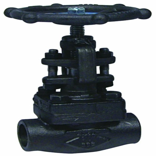 Industrial forged steel globe valve, 2 inch size. Features manual/hydraulic operation, alloy/stainless steel body, and flanged/screwed/socketweld ends. High pressure rated for steam, air, and oil.