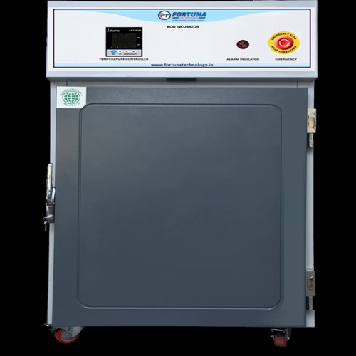 This PLC-based gray BOD incubator offers 2 shelves and a 250-liter chamber volume. It features PID-based air circulation and a temperature range of 5 to 75°C. Made in India.