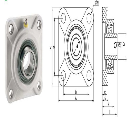 UCF four bolt flange bearing block. Features a nylon housing with an integrated SS bearing for robust performance. White color.