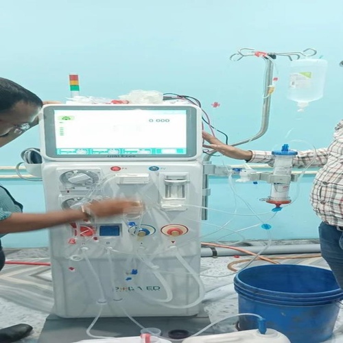 Automatic haemodialysis machine for clinical use. Model 5008S. Available as new and second-hand. Manufactured in India. Designed for efficient haemodialysis treatments.