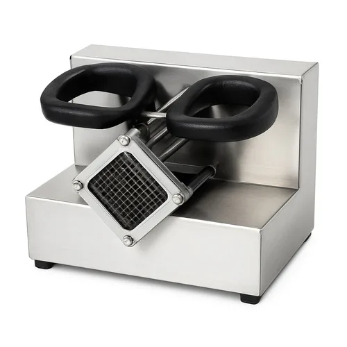 Professional french fries cutter machine designed for high-volume food preparation. This equipment ensures efficient and consistent slicing of potatoes for commercial applications.