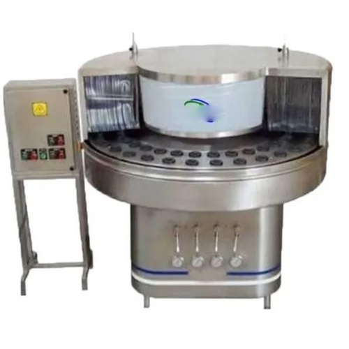 Semi-automatic front-loading bottle washing machine with a 2 HP motor. Features a capacity of 30-50 bottles per minute for efficient washing operations.