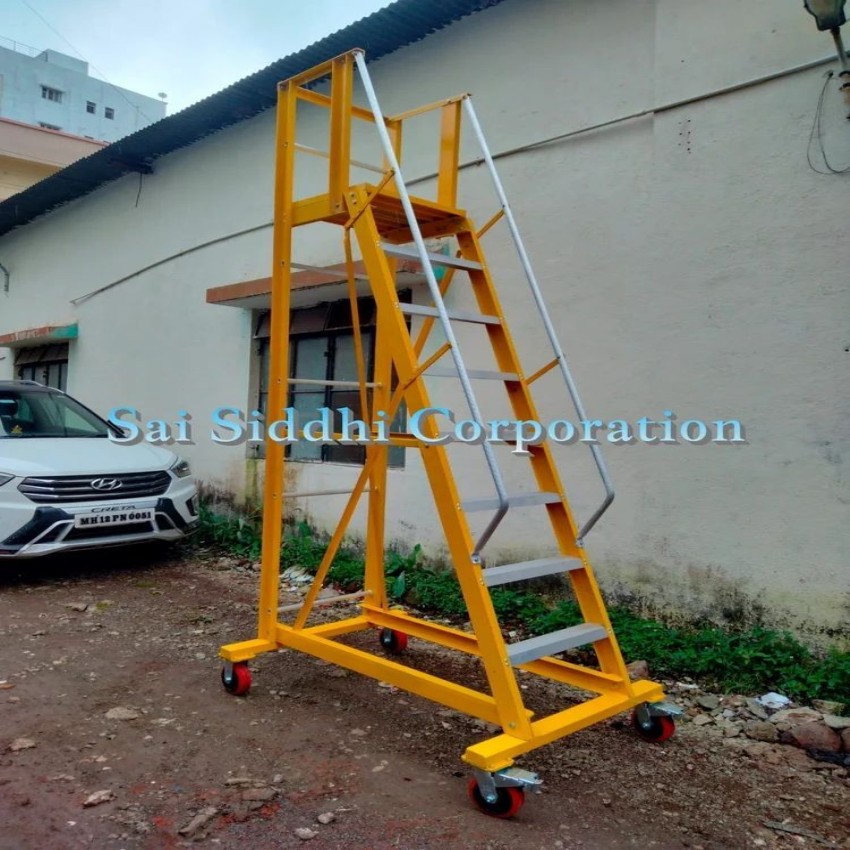 This anodized FRP step ladder has 5 steps, a 10 ft height, and a 150 kg capacity. Features 4 wheels for easy mobility. Made in India.
