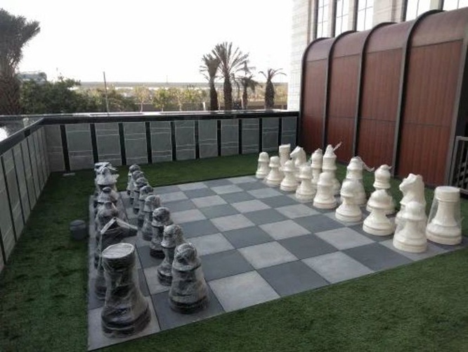 FRP outdoor chess set available in sizes from 16 to 24 inches. Packaged for export, suitable for any age group and color.