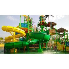 Customizable FRP water park slides for pools. New, all-age group slides made from fibre-reinforced plastic, available in various colors. Ideal for water parks and swimming pools.