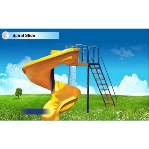 FRP spiral sliding equipment designed for 4-10 kids. Available in heights of 12 feet with sliding lengths of 6, 9, or 15 feet. Features a color-coated finish.