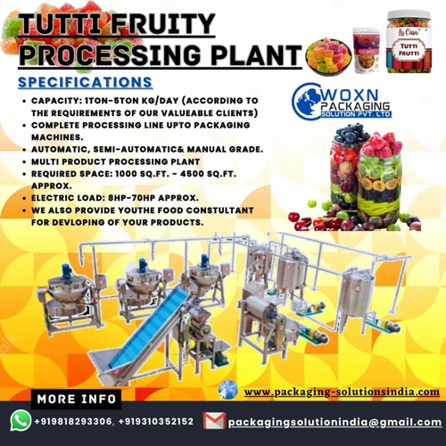 Stainless Steel manual Tutti Frutti Making Machine with 1hp power. Portable, color-coated finish, 600kg weight. Capacity: 500kg to 2 ton in 8 hours.
