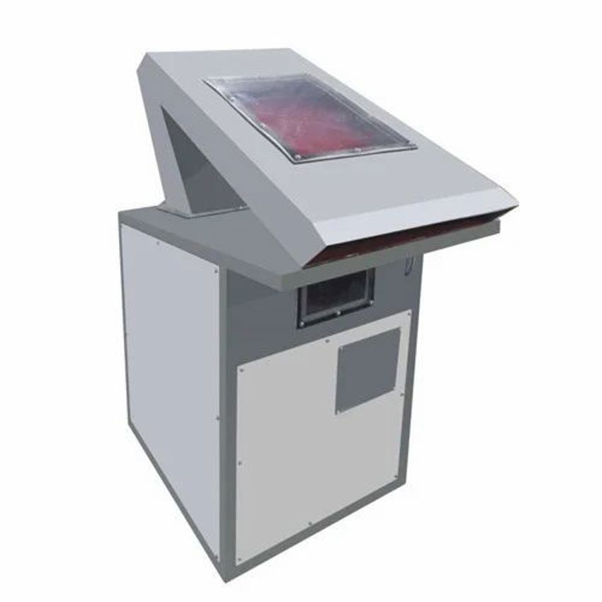 Industrial thread sucking machine with 650mm width, 1420mm depth, 1625mm height, and 290kg net weight. Features 350x350mm air exhaust and 600x178mm window opening. Requires 3.75 KW electric connection.