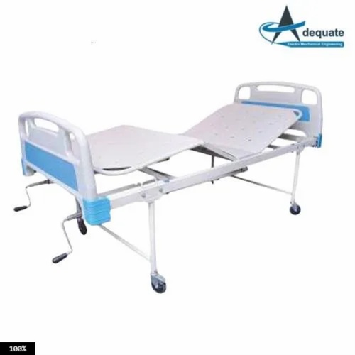 Manual full Fowler bed for hospitals and clinics. Features head and leg elevation. Made of powder-coated mild steel. Size: 80x36x22 inches.