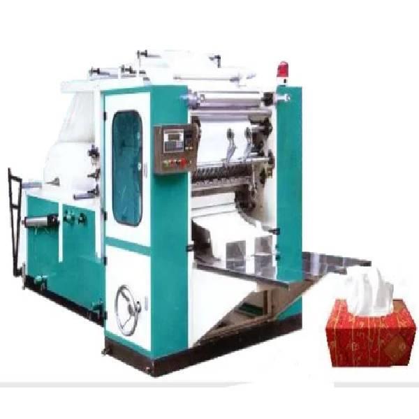 Fully automatic facial tissue and pop-up tissue box making machine. Features a 440v, 50Hz, three-phase power system and conversion speed regulator.