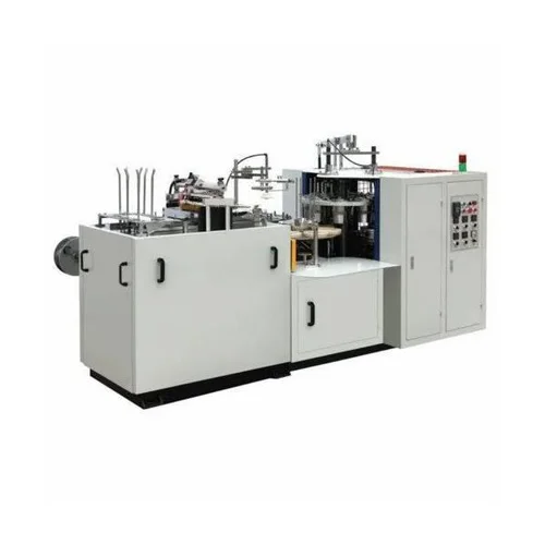 This fully automatic paper cup device manufactures 0-100ml paper cups at 60-65 per minute. Designed for three-phase power operation, efficient paper processing.