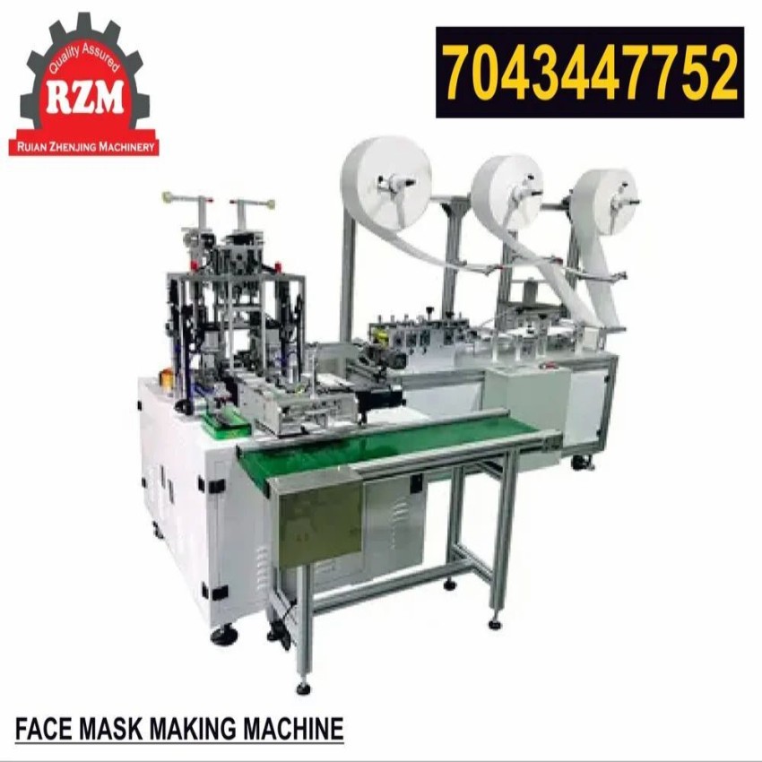 Fully automatic stainless steel 3 ply mask making machine, model RZM-V11. Produces 80-120 masks per minute. 10 kW power, 1300 Kgs weight.