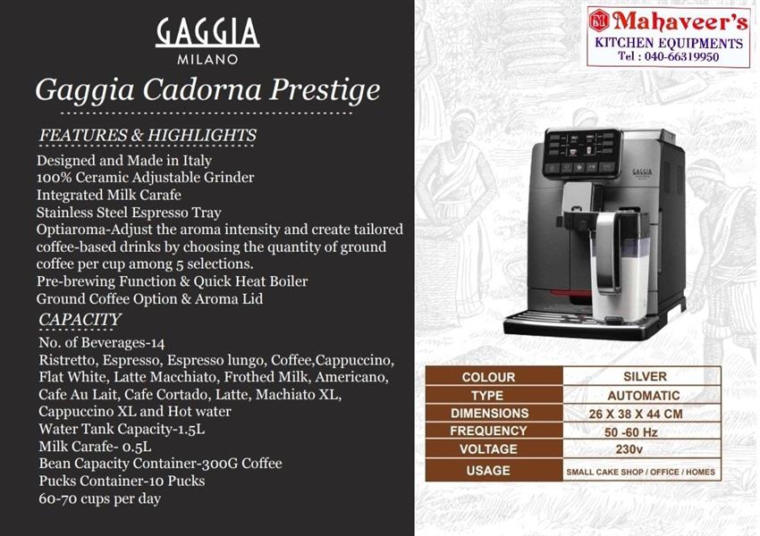 Fully automatic Gaggia Codorna Prestige coffee maker, brews up to 100 cups. Features advanced automation for convenient operation. Includes a 1-year warranty.