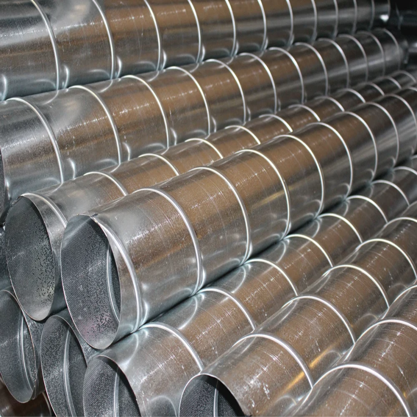 Rectangular galvanized iron spiral duct for commercial air conditioning systems. Features a chrome finish and durable construction for efficient air distribution in commercial spaces.
