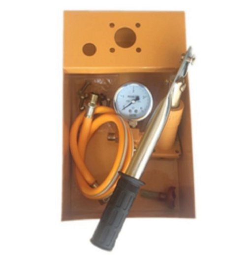 Galvanized metal hydraulic water hand pump with analog display. Offers 40 kg/cm2 pressure and 4.5 L water capacity. Coated finish ensures durability and corrosion resistance.