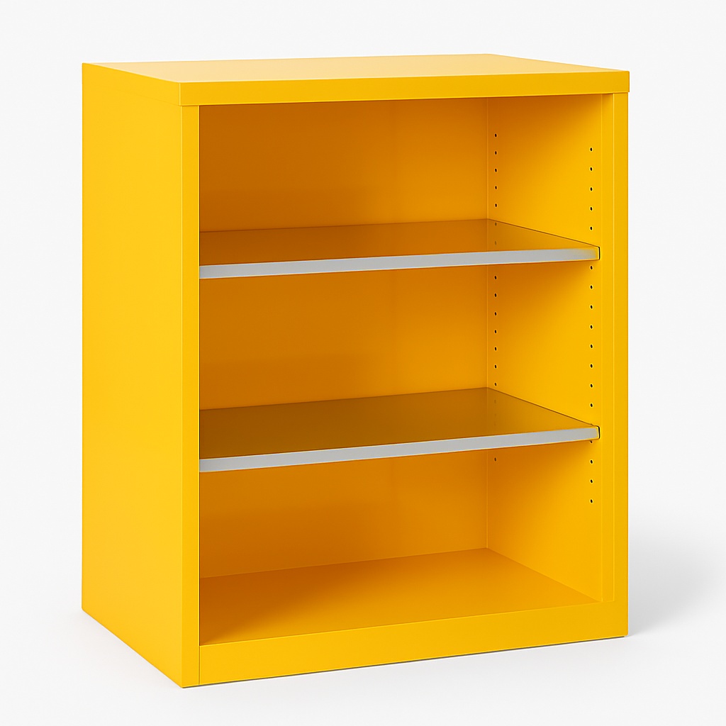 350 Liter capacity flammable storage cabinet. Features galvanized steel construction, 3 racks, leakproof design, and double doors. Safety yellow for enhanced visibility and compliance.