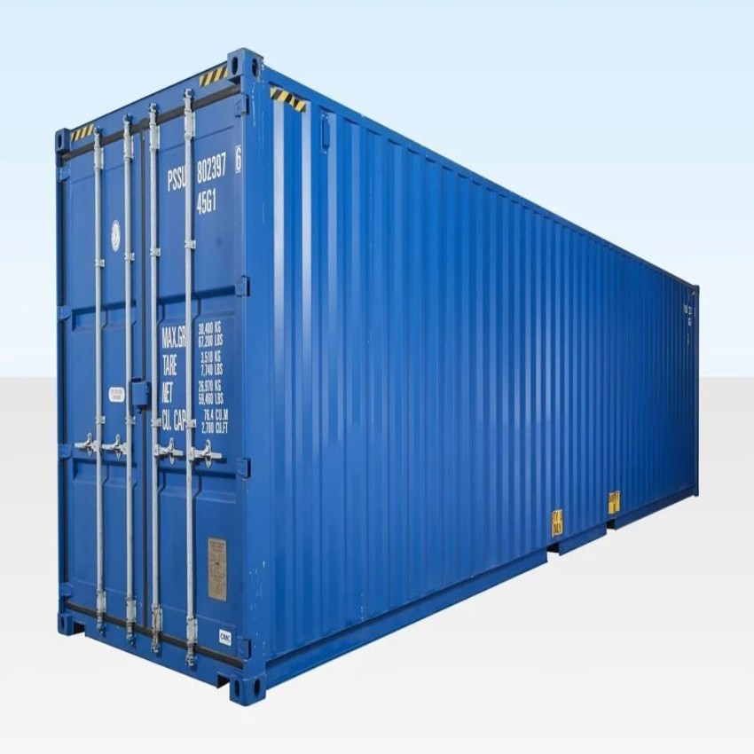 Galvanized steel dry intermodal container, 20 ft length. Available in blue, yellow, white. 20-ton storage capacity. Made in India.