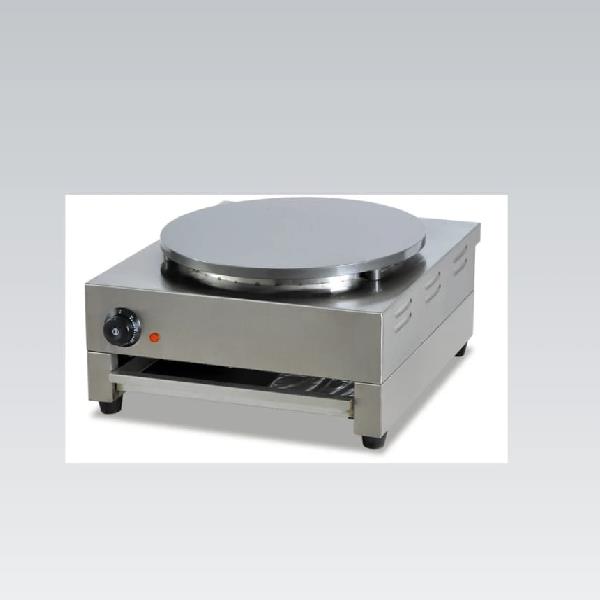 Gas-powered crepe machine for commercial use. Features a robust design for efficient crepe preparation. Ideal for high-volume food service operations. Reliable and easy to operate.