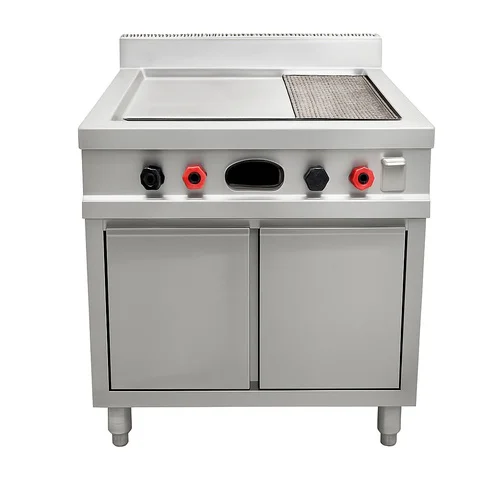 Commercial gas griddle featuring an integrated oven. Ideal for hotel and restaurant use. Minimum order quantity is one piece.
