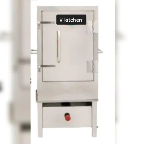 This gas-operated idli steamer features a 6-tray model, facilitating bulk idli production. Designed for efficient steaming with a gas fuel source.