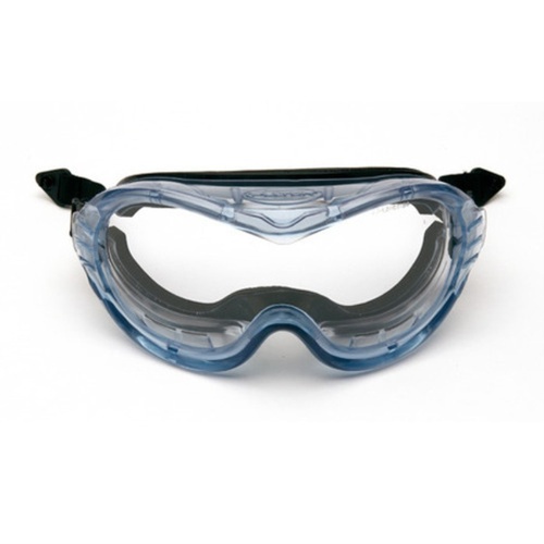 These safety goggles feature a polycarbonate lens and elastic band frame. Designed for general safety applications. Made in India.