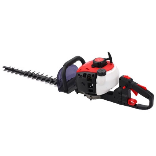 Gasoline-powered hedge trimmer with adjustable forward speed. Features include blade length, cutting capacity, and cutting width. Suitable for various cutting tasks.
