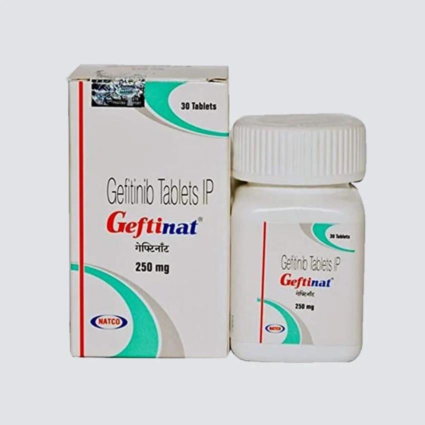 Geftinib 400mg tablets for cancer treatment. Each bottle contains 30 tablets, formulated for effective therapeutic outcomes. Manufactured by Natco Pharma.