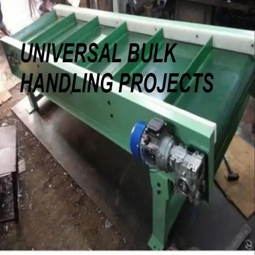 Electric cleated conveyor belt with 50 Hz frequency and 415 Volts. Features 3-phase power, geared motor drive, and 1-year warranty. Capacity: 150-200 kg/feet.