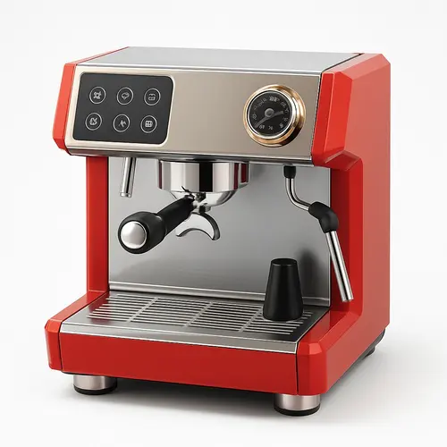 Semi automatic stainless steel coffee machine, 50 cups/day capacity. 120 V, 50 Hz, 1300 W power. 3 L boiler, 250 gm hopper. Comes with a 1-year warranty.