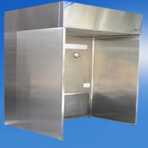 Industrial dispensing booth for pharmaceutical use. Material: GI powder coated/SS 304. Air flow: 0.45 +- 0.1 m/sec. Cleanliness: Class 100/ISO Class 5.