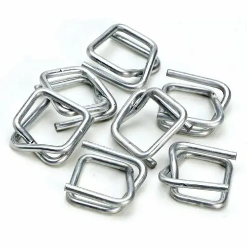 GI silver woven lashing strap buckle with 2500 kg breaking strength. Box packaging. Made from SS material with chrome finish. Wire diameter: 7.0 mm.